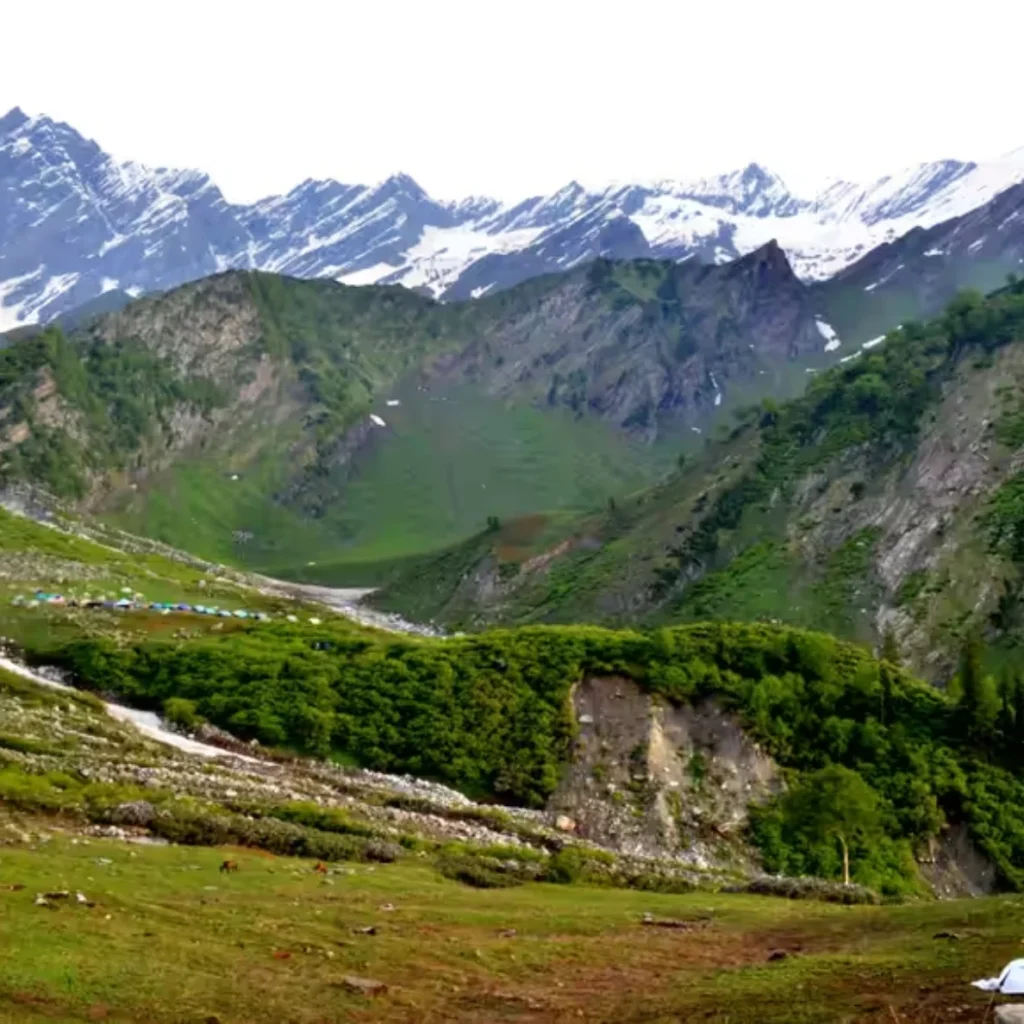 The trail offers breathtaking views of some of the most famous mountains in the region, including Hanuman Tibba, Friendship Peak, and Shitidhar. As you ascend through lush green meadows, alpine grasslands, and rocky terrain, the landscape gradually transforms into a dramatic high-altitude setting. The open valleys and snow-capped peaks create a stunning backdrop throughout the journey.