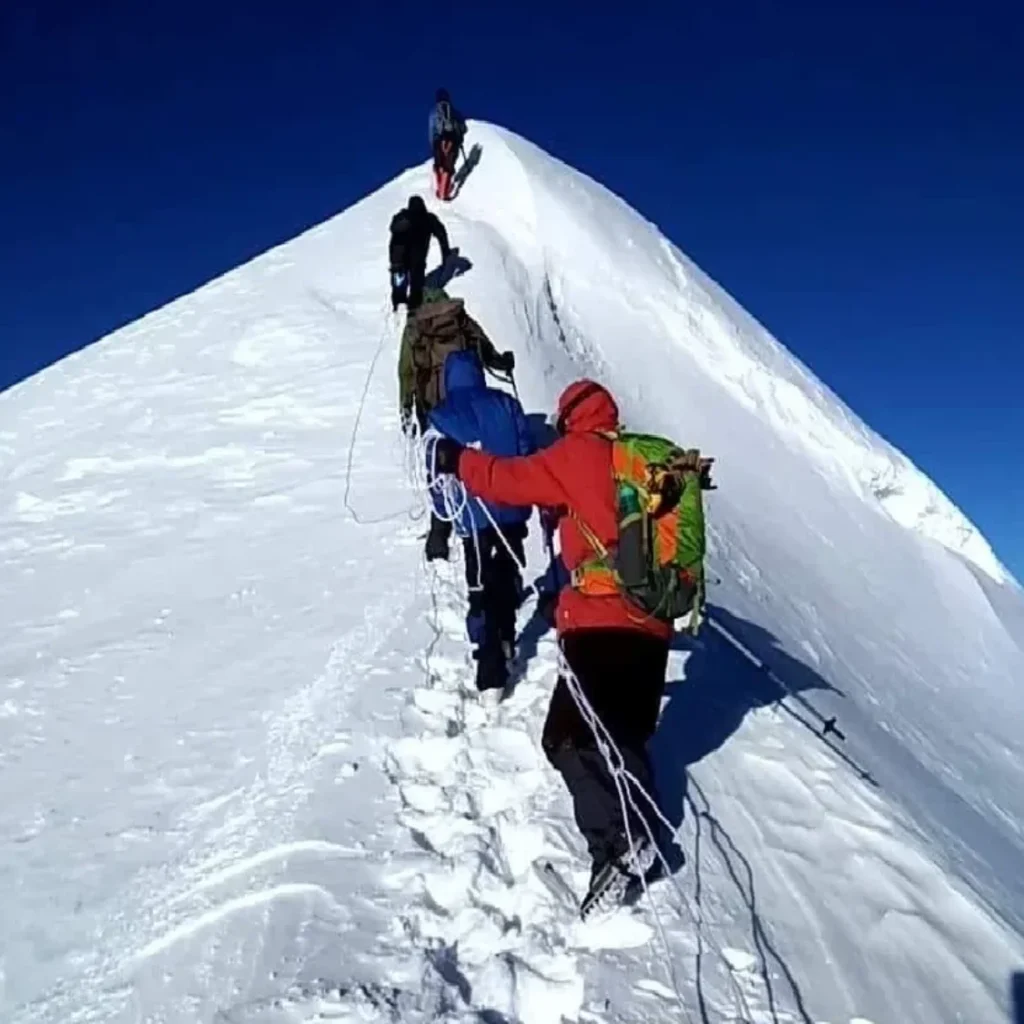 The highlight of the expedition is the summit attempt, where climbers ascend through snowfields, glaciers, and steep slopes. From the summit, climbers are rewarded with breathtaking panoramic views of famous Himalayan peaks such as Swargarohini, Bandarpoonch, and other Garhwal ranges. The expedition requires strong physical fitness, technical climbing skills, and proper acclimatization due to the high altitude.