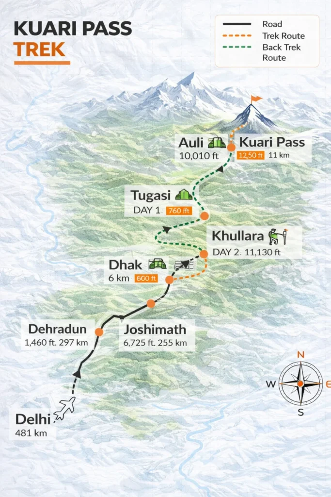 The Kuari Pass Trek offers a perfect blend of alpine beauty, high-altitude adventure, and breathtaking Himalayan views. Located near Manali in Himachal Pradesh, this trek is known for its vast green meadows that resemble the famous grasslands of Switzerland. What makes this trek truly unique is that you gain significant altitude in a short span, allowing trekkers to experience high mountain landscapes within just a few days.